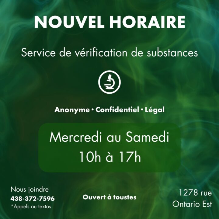 Il y a de nouveaux horaires à Spectre de rue! Notre organisme-membre situé dans le quartier Centre-Sud de Montréal modifie en effet les horaires de ses services de consommation supervisée et de vérification des substances.