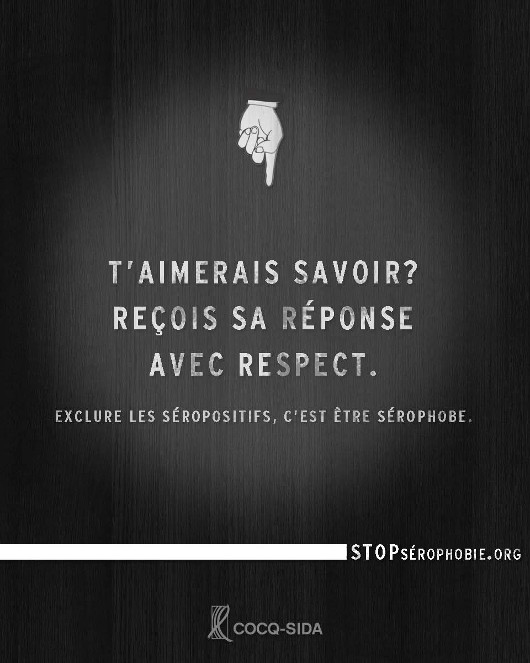 La COCQ-SIDA ainsi que ses membres oeuvrant auprès des hommes (cis ou trans) gais, bisexuels et des hommes ayant des relations sexuelles avec des hommes ont réfléchi aux différentes manifestations de la sérophobie dans le milieu gai québécois. Que ce soit dans les bars, les saunas ou les sites en ligne de clavardage et de rencontres, plusieurs hommes séropositifs rapportent vivre des situations de discrimination, de rejet et d’exclusion. Face à ce constat, il a été décidé de développer une campagne ciblée au message percutant, afin de créer un environnement solidaire où la discrimination et l’exclusion n’ont pas de place. C’est ainsi qu’est née la campagne « Stop sérophobie ».