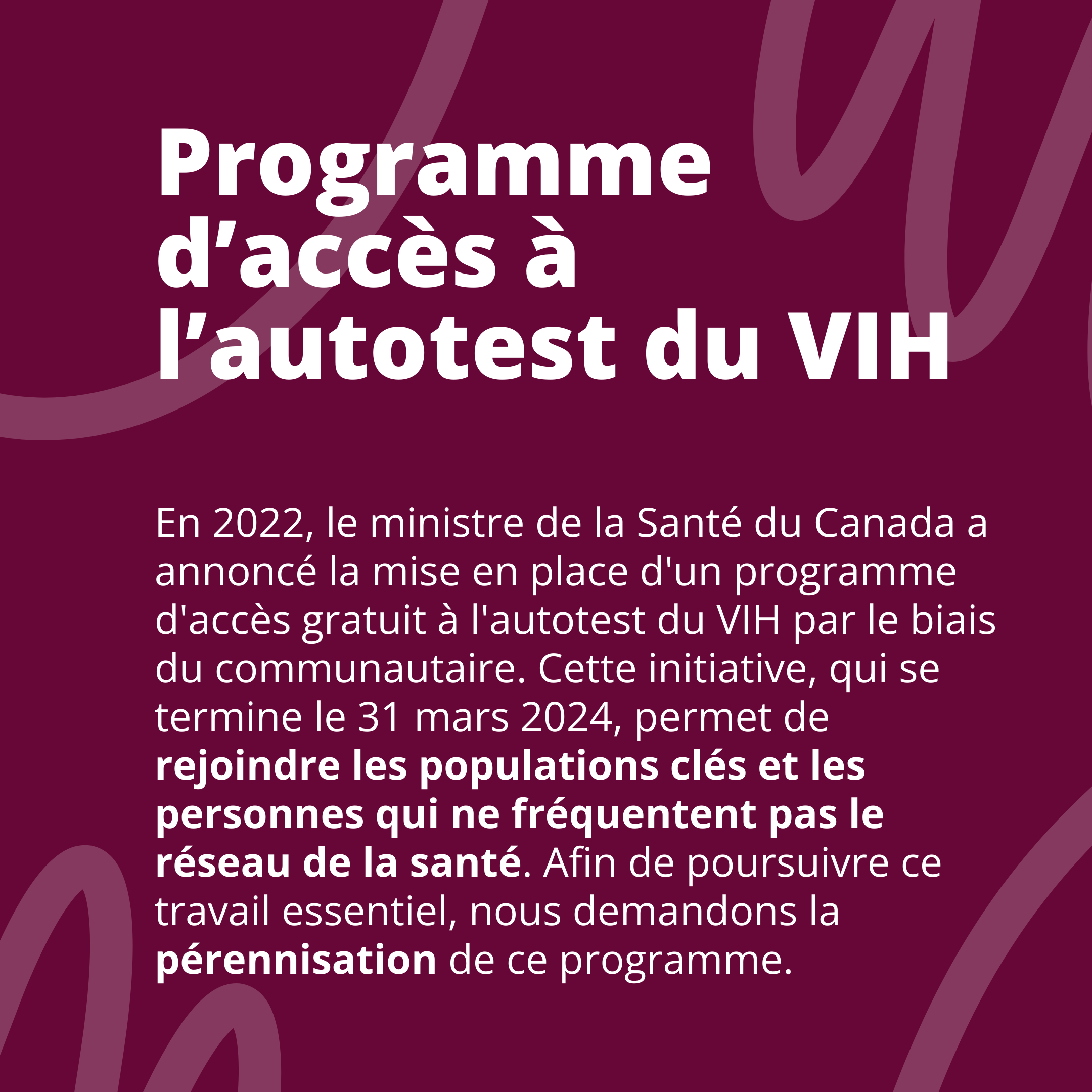 La Semaine internationale du dépistage de Coalition PLUS a débuté aujourd’hui. À cette occasion, la COCQ-SIDA et la Fondation québécoise du sida ont produit un communiqué demandant aux gouvernements du Canada et du Québec de pérenniser le programme d’accès aux autotests du VIH et d’implanter le dépistage communautaire.
