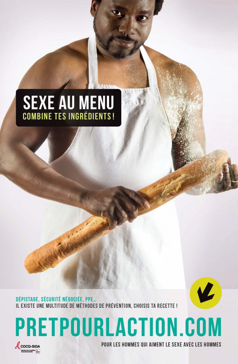 Sexe au menu. Combine tes ingrédients! (Zone Créative, 2016) En juin 2016, la COCQ-SIDA a lancé une campagne d’information à l’intention des hommes gais, bisexuels